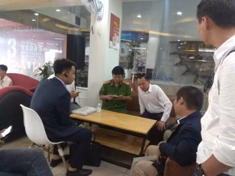 Anh Quý làm việc với nhân viên địa ốc Alibaba sáng ngày 26/8 dưới sự giám sát của Công an P. Hiệp Bình Chánh (Ảnh Thanh niên)