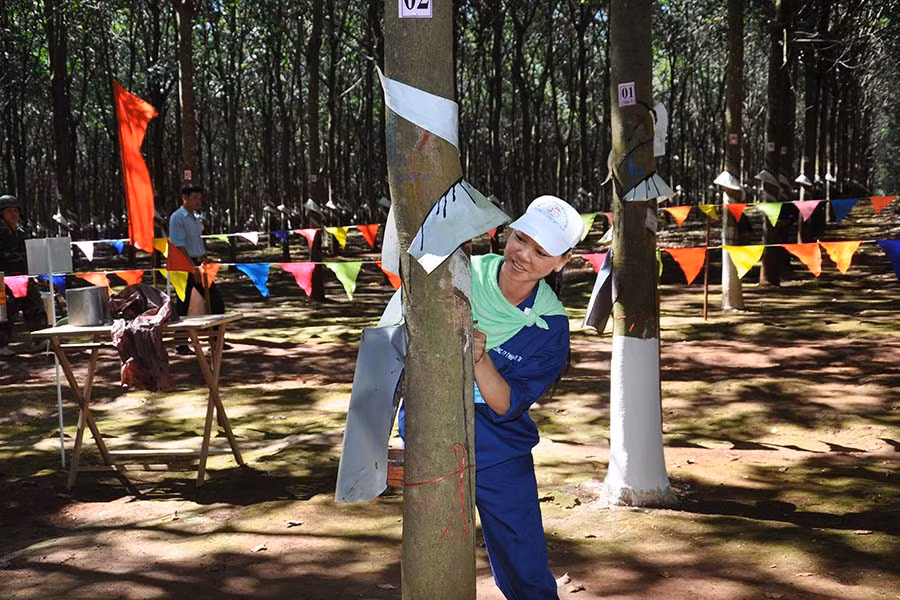 | >> Cánh chim đầu đàn của Công ty 74 (Trang 9) Ở Công ty 74 (Binh đoàn 15), mọi người gọi Rơ Lan HBlơn-công nhân thu hoạch mủ cao su đội 9 là cánh chim đầu đàn. Năm nào chị cũng được Công ty khen thưởng, trong đó có 4 năm liên tục (2013-2016) đạt danh hiệu “Chiến sĩ thi đua” và được Bộ Tư lệnh Binh đoàn tặng bằng khen vì có thành tích xuất sắc trong thực hiện cuộc vận động “Phát huy truyền thống, cống hiến tài năng, xứng danh Bộ đội Cụ Hồ”. |