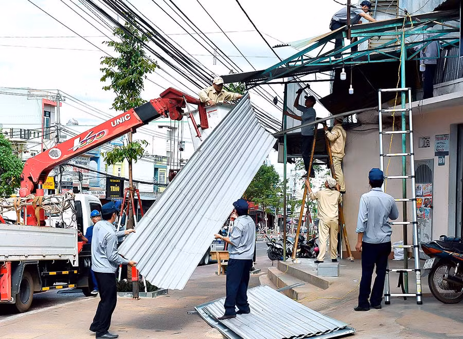 >> Thành phố Pleiku lập lại trật tự vỉa hè (Trang 3) Sau hơn nửa tháng tổ chức tuyên truyền, vận động về việc thiết lập lại kỷ cương trật tự đô thị, sáng 27-3, đoàn kiểm tra xử lý trật tự đô thị trên địa bàn TP. Pleiku (gọi tắt là đoàn kiểm tra) cùng 23 xã, phường của thành phố đồng loạt ra quân tháo dỡ các công trình lấn chiếm vỉa hè. |