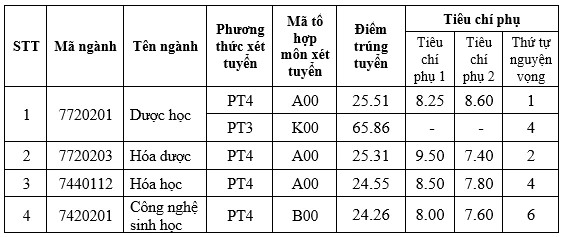 Lưu ý, trong trường hợp số thí sinh đạt ngưỡng điểm trúng tuyển vượt quá chỉ tiêu, các thí sinh bằng điểm xét tuyển ở cuối danh sách sẽ được xét trúng tuyển lần lượt theo tiêu chí phụ 1, tiêu chí phụ 2, thứ tự nguyện vọng của thí sinh trong phiếu đăng ký xét tuyển. Tiêu chí phụ 1, tiêu chí phụ 2 cụ thể như sau: