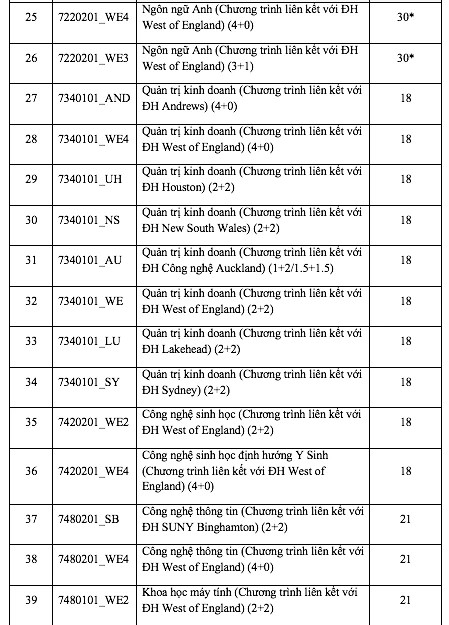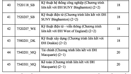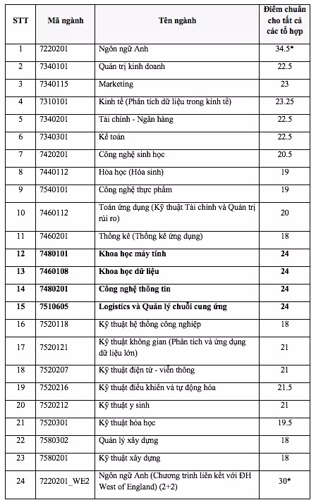 Điểm chuẩn từng ngành cụ thể như bảng sau: