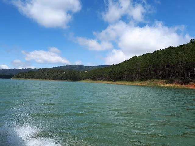Hồ Tuyền Lâm là hồ nước ngọt rộng nhất thành phố Đà Lạt với diện tích 320 ha. Bao quanh hồ là hàng loạt resort và các điểm check in nằm xen kẽ với những rừng thông. Một số hạng mục xây dựng dở dang, nằm lẩn khuất sau những tán rừng.
