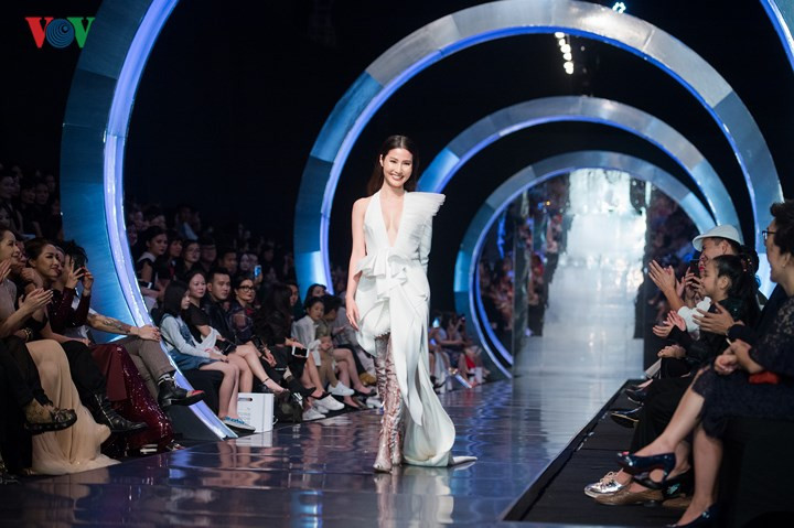 | Cô vừa catwalk vừa vẫy tay chào khách mời và khán giả. |