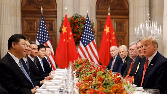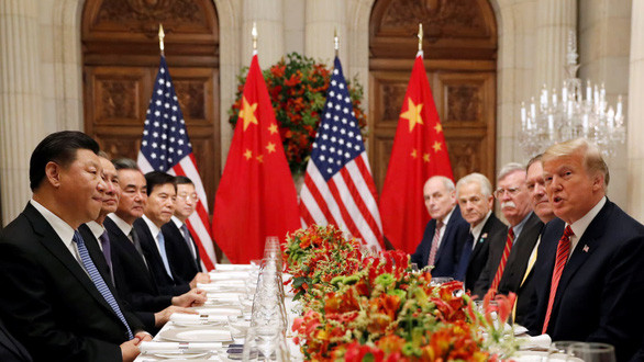 Chủ tịch Trung Quốc Tập Cận Bình (bìa trái) và Tổng thống Mỹ Donald Trump (bìa phải) tại cuộc gặp song phương ở Argentina - Ảnh: REUTERS