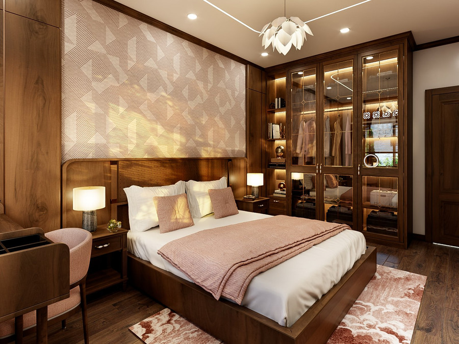 Các phòng ngủ sẽ có phong cách riêng tùy theo sở thích mỗi thành viên được kiến trúc sư thiết kế rất hài hòa, đồng bộ tạo nên nếp sống văn hóa cho gia chủ với đầy đủ tiện nghi. Tất cả các phòng đều có cửa sổ hướng ra thiên nhiên, đảm bảo mỗi giấc ngủ đều thư thái và trọn vẹn nhất sau một ngày dài.