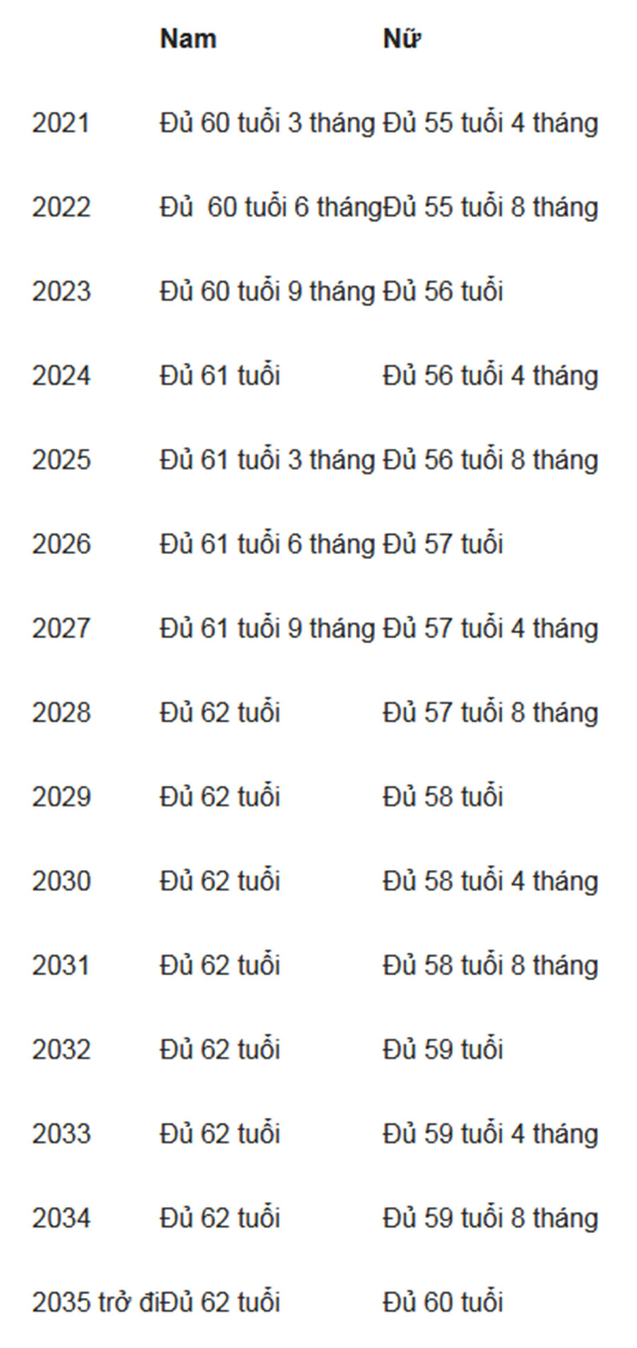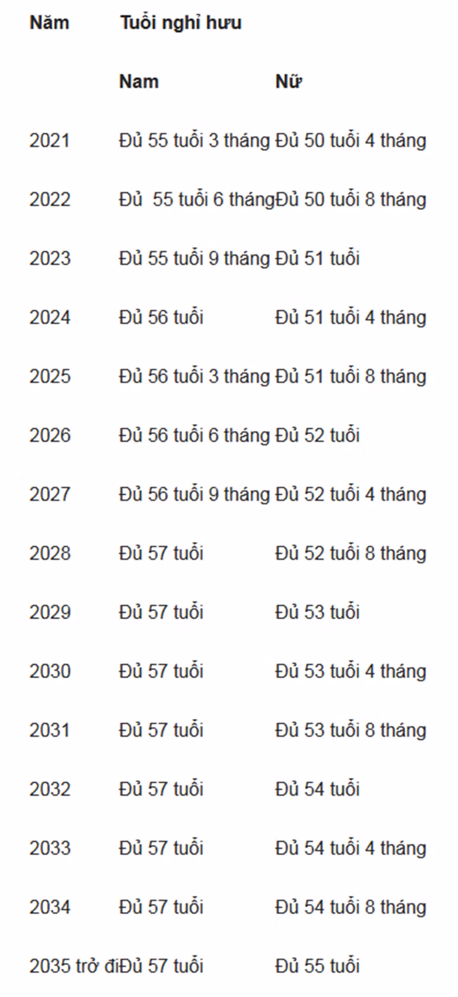Theo đó, điều kiện hưởng lương hưu đối với NLĐ từ ngày 1-1-2021 cụ thể như sau: