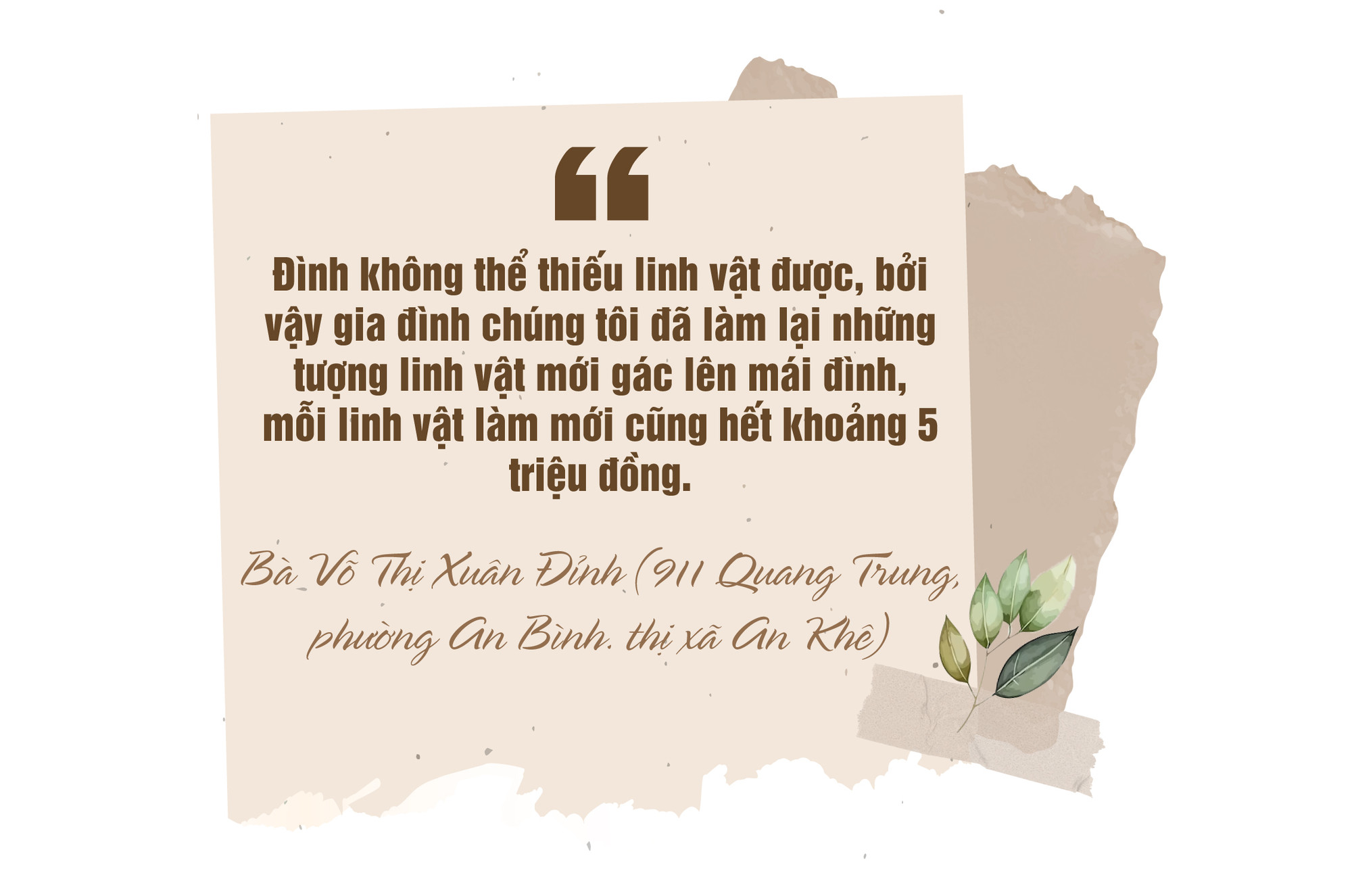 Cũng theo bà Đỉnh, từ nhỏ bà đã theo cha chuẩn bị nhang đèn trong những lần tế lễ ở đình làng. Khi cha mất, bà thay cha đảm đương công việc này cho đến nay.