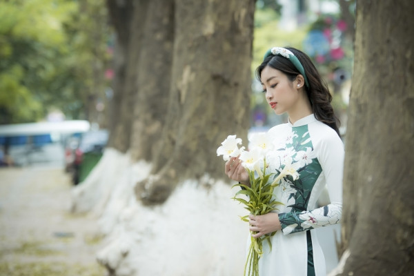 Bộ sưu tập vẫn trung thành với phom dáng truyền thống của áo dài dân tộc nhưng mang hơi thở của thời đại nhờ kỹ thuật cắt may và công nghệ in màu. Hoạ tiết hoa loa kèn được in bay bổng trên nền vải lụa, gấm hoa phù hợp để các bạn gái mặc đi dạo phố hoặc khi tham gia các buổi tiệc, chương trình mang đậm nét văn hoá truyền thống.