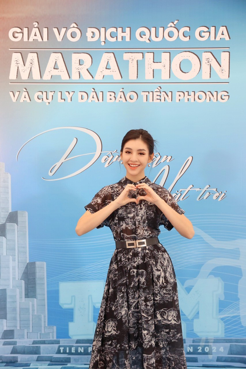 | Á hậu Trịnh Thùy Linh dự sự kiện với trang phục nền nã. Cô đồng hành cùng nhiều sự kiện từ thiện, xã hội, thể thao của báo Tiền Phong. |