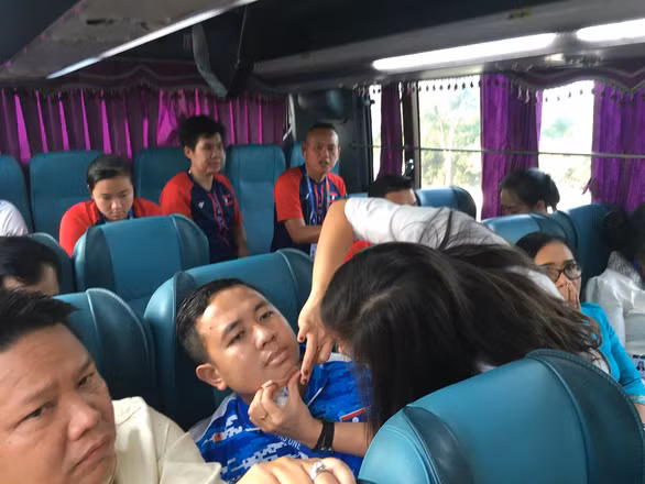 Trên xe có khoảng 20 thành viên đoàn thể thao Việt Nam, chủ yếu là cán bộ đoàn, bác sĩ, HLV, cán bộ truyền thông. Ngoài ra còn có các thành viên của đoàn thể thao Lào cũng được bố trí ngồi cùng xe với đoàn Việt Nam.