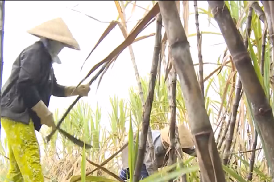 Nông dân trồng mía có nguy cơ phải bỏ ruộng vì giá thu mua nguyên liệu ngày càng giảm. Ảnh: Theo VTV1