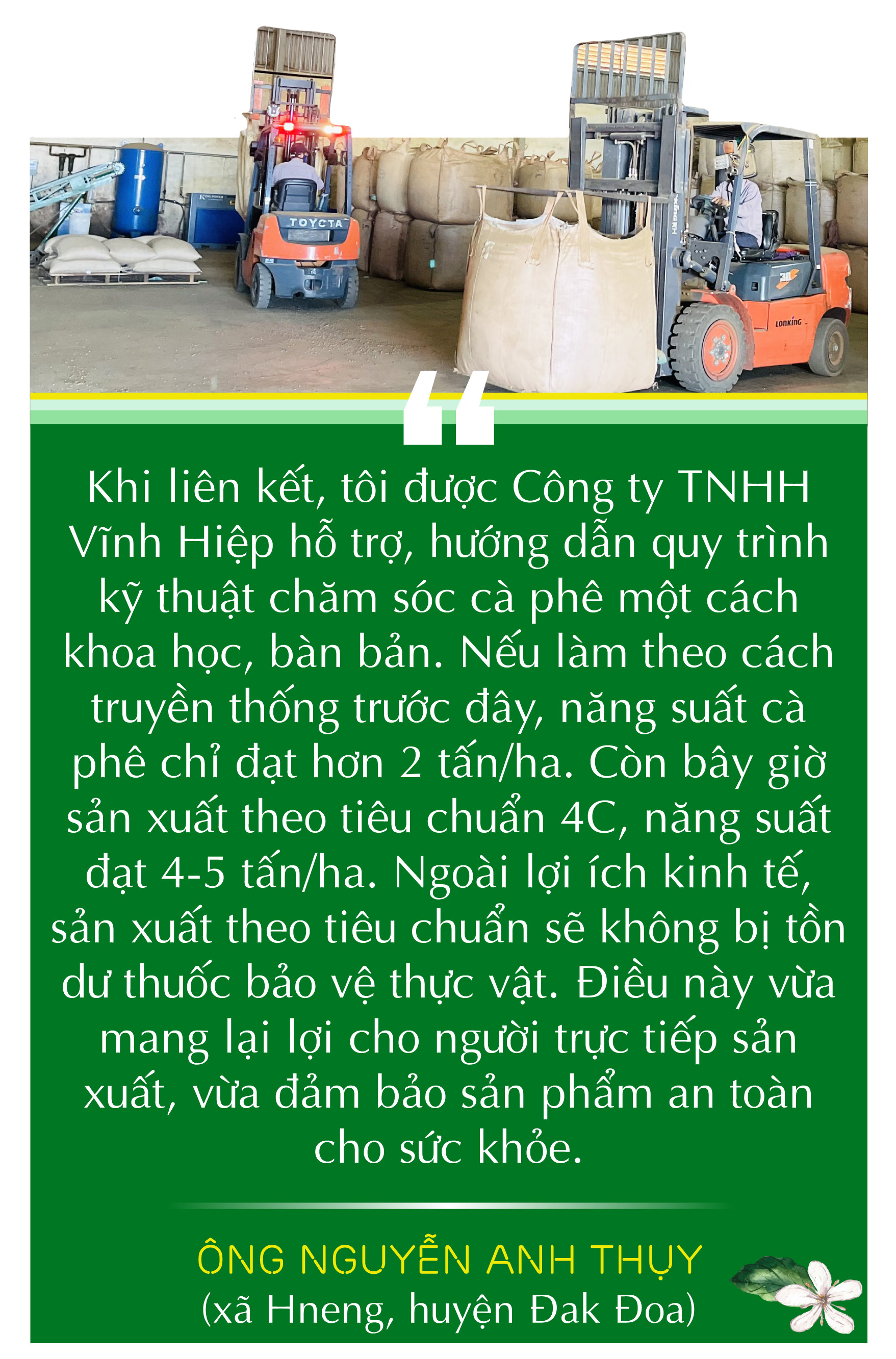 Tham gia nhóm sản xuất cà phê theo tiêu chuẩn 4C, ông Nguyễn Anh Thụy (xã Hneng, huyện Đak Đoa) nhận thấy lợi ích mang lại rất lớn.