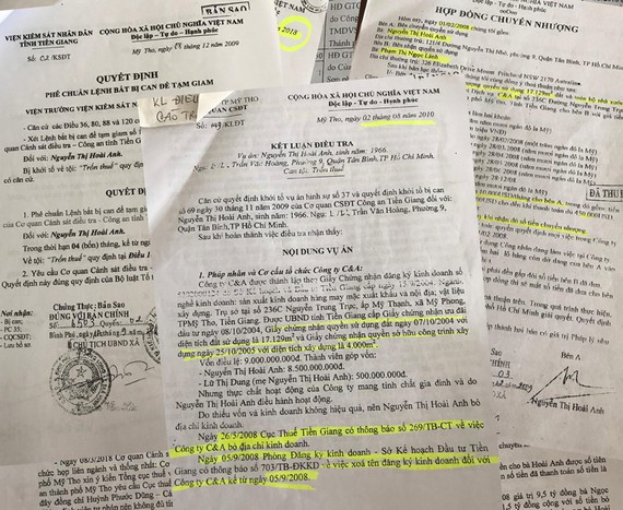 Không những công an không hỗ trợ bà Hoài Anh đòi nợ mà còn khởi tố bà Hoài Anh về tội “trốn thuế” đối với số tiền 3 tỷ đồng trong hợp đồng vay mượn nợ kể trên. Công an cho rằng, bà Hoài Anh tách 3 tỷ đồng trong hợp đồng mua bán ban đầu là để giảm số tiền thuế phải nộp. Do vậy, Đại tá Ngô Thanh Phong, Phó Thủ trưởng Cơ quan CSĐT tỉnh Tiền Giang, ký Quyết định số 69 năm 2009 khởi tố, bắt tạm giam bà Hoài Anh về tội trốn thuế. Các quyết định này đã được Phó Viện trưởng Viện KSND tỉnh Trần Văn Anh phê chuẩn.