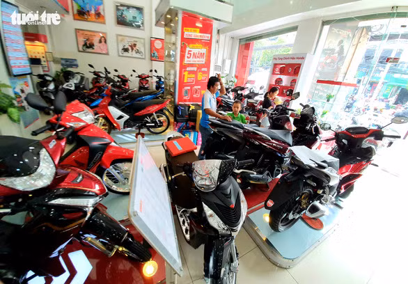 Khách hàng tìm hiểu mua xe máy của Honda tai một đại lý ở TP.HCM - Ảnh: CÔNG TRUNG