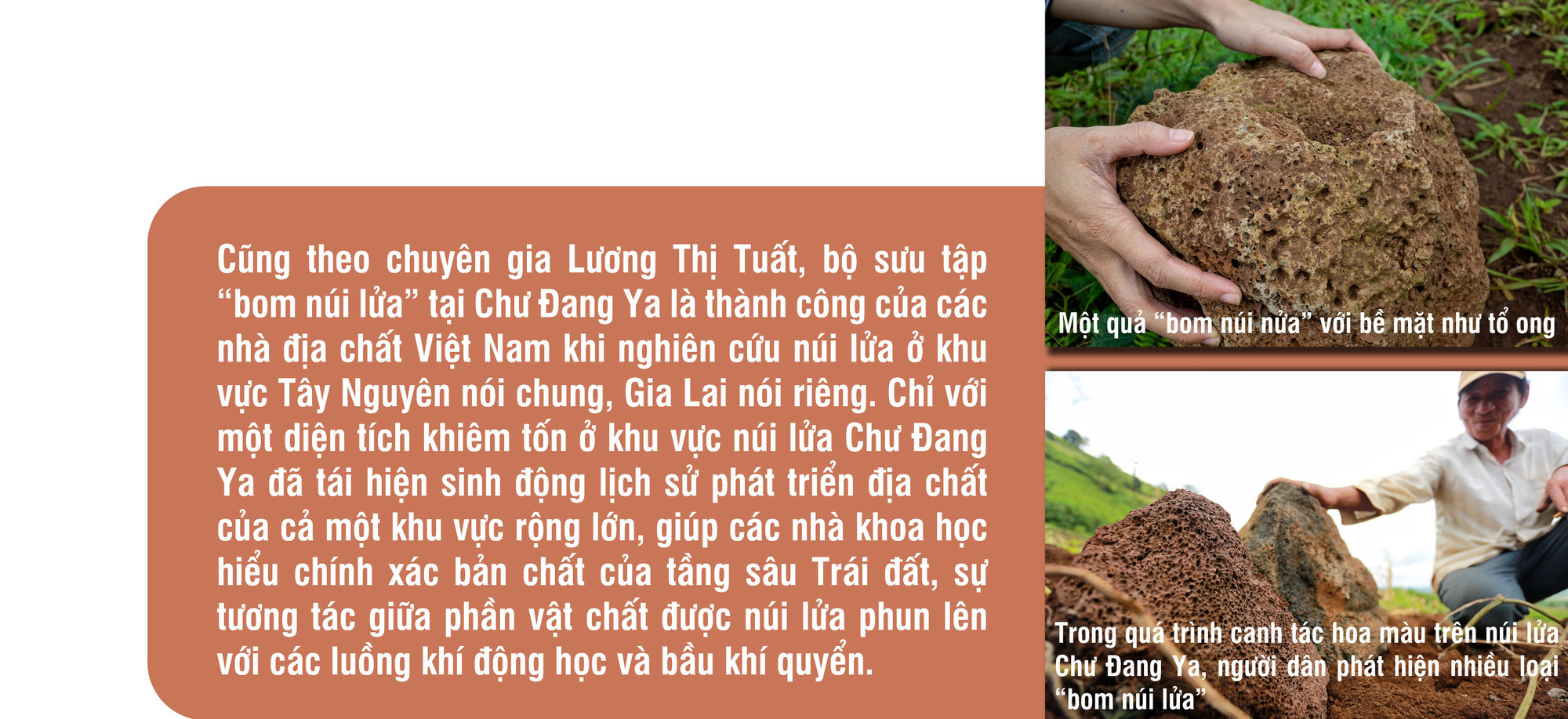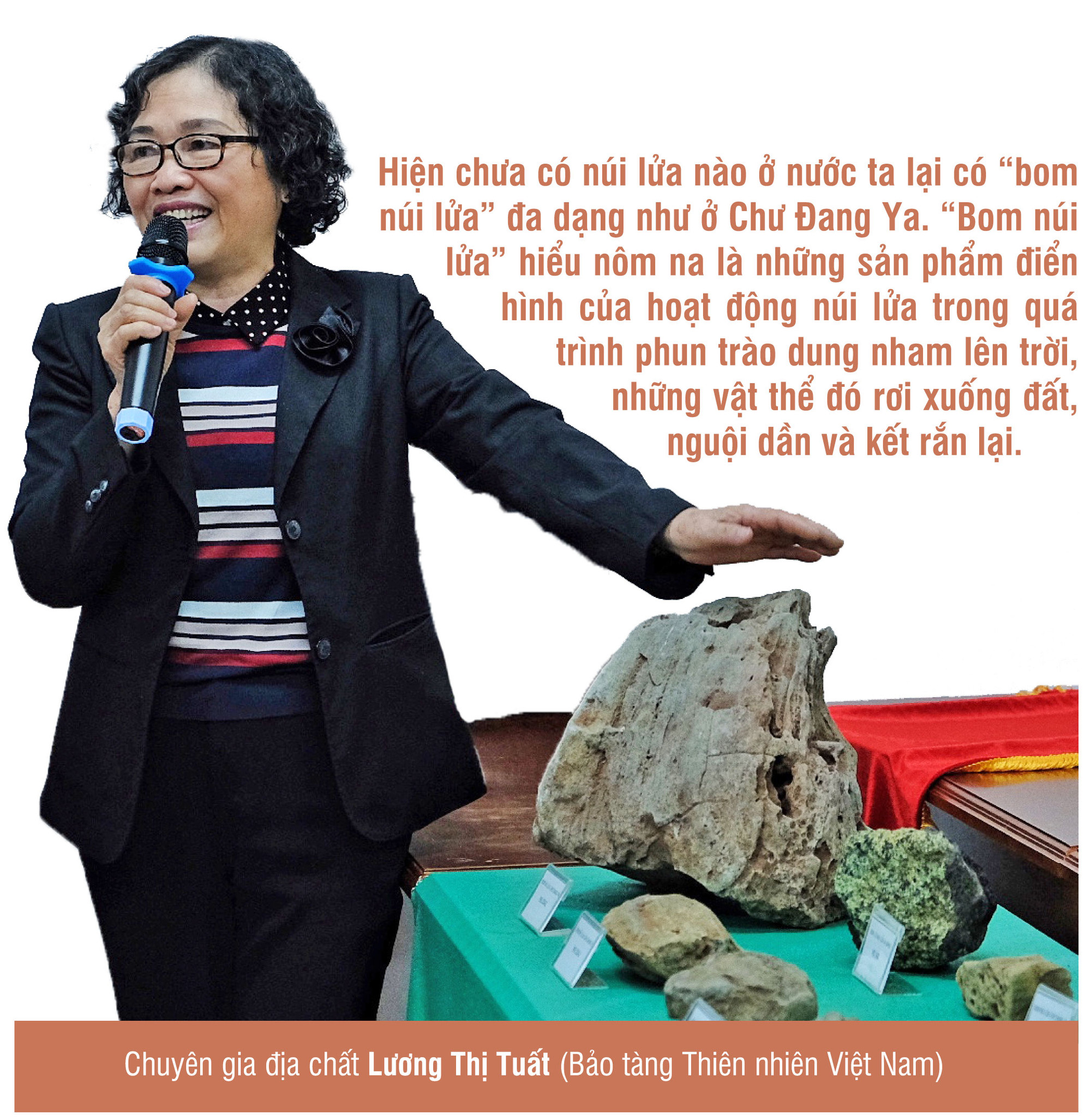 Bà Tuất cho biết, việc núi lửa Chư Đang Ya có những mẫu vật về di sản thiên nhiên như vậy là rất quý giá. Cùng với núi lửa, “bom núi lửa” sẽ là những giáo cụ trực quan, sinh động để nâng cao nhận thức cộng đồng về di sản thiên nhiên và bảo tồn di sản địa chất, phục vụ du lịch và phát triển kinh tế.
