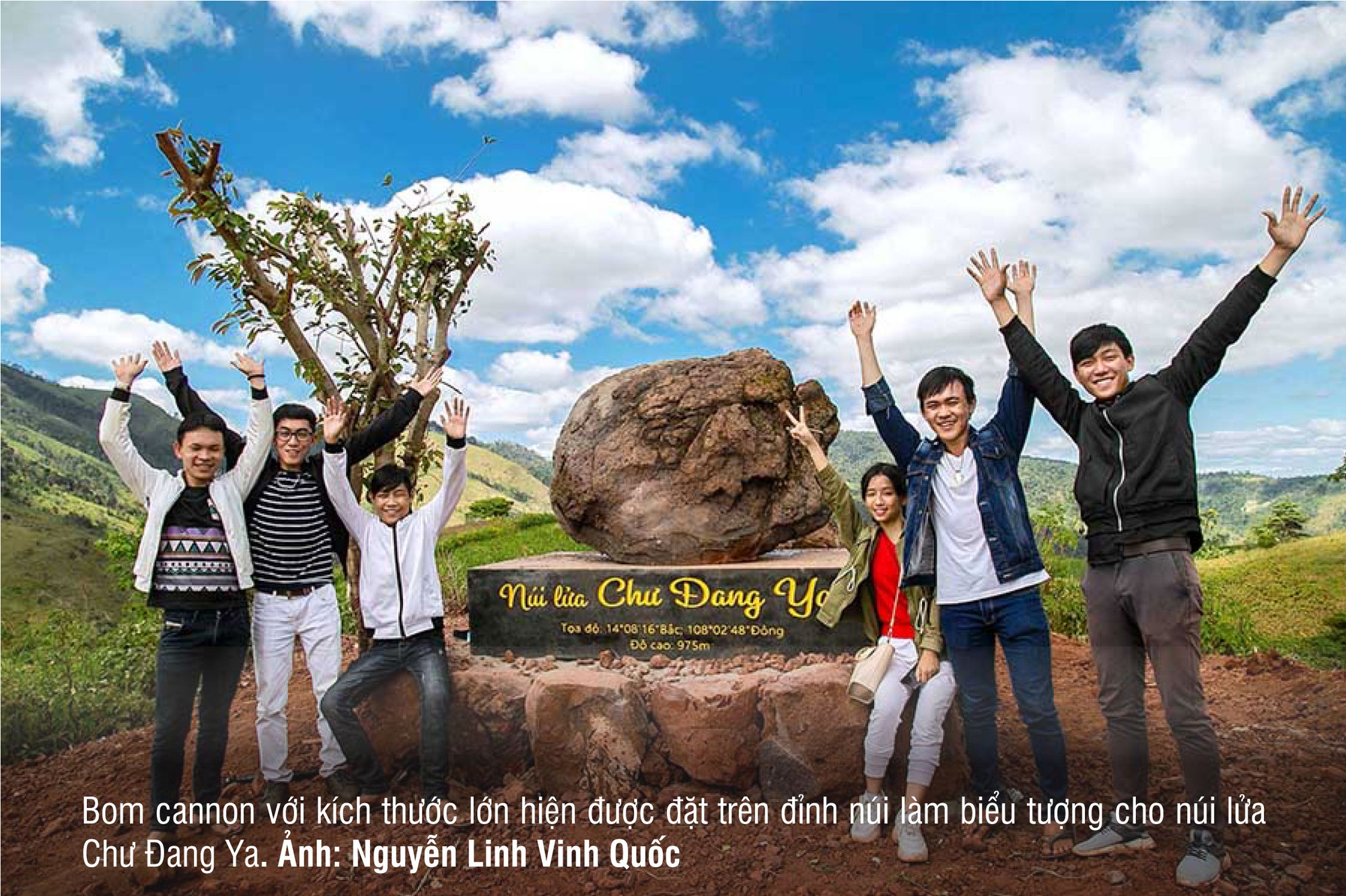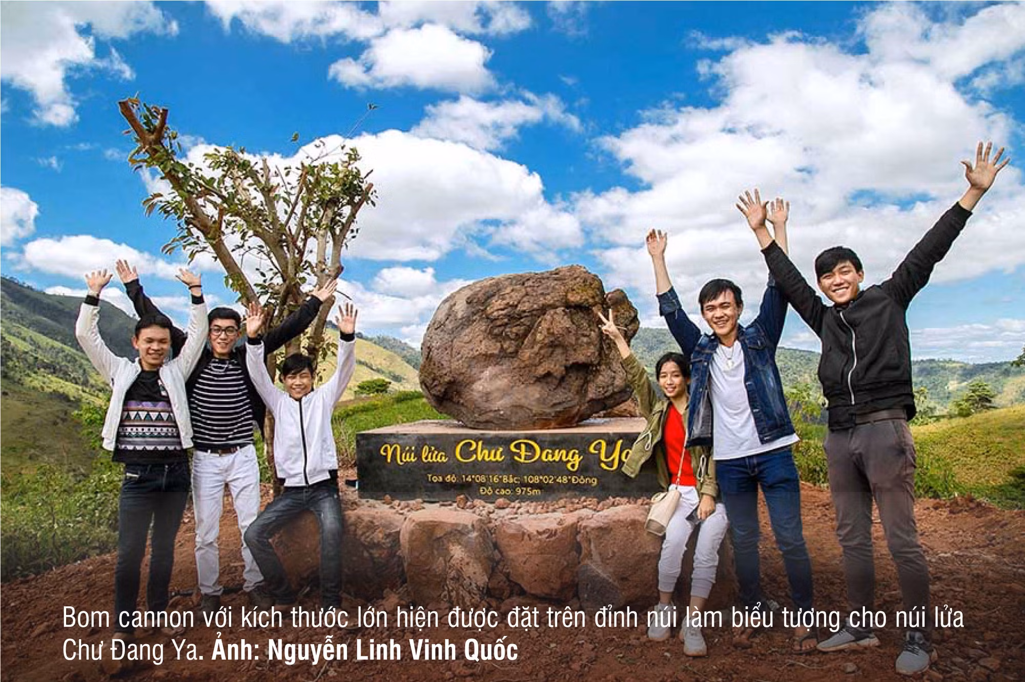 Tại khu vực núi lửa Chư Đang Ya, dưới sự chỉ dẫn của người dân địa phương, các nhà khoa học đã tìm thấy một quả bom cannon có kích thước lớn ở sườn Đông Nam. Hiện “khối bom” này đang được đặt ở vị trí cao nhất để làm biểu tượng cho ngọn núi lửa. Nhiều du khách đến đây đã chụp hình check-in với “bom núi lửa” mang tính biểu tượng này.