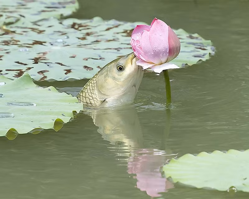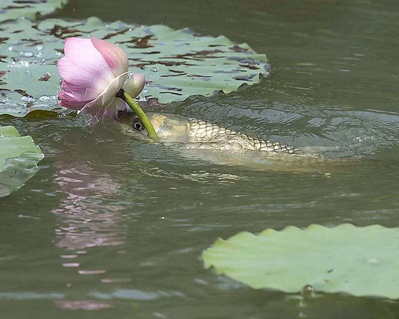 Trên thực tế, một số loài cá nước ngọt có thực đơn tương đối phong phú, trong đó có cả món hoa tươi. Ngoài hoa sen, chúng cũng sẽ ăn hoa súng hoặc bất cứ mầm sậy non nào chúng có thể với đến.