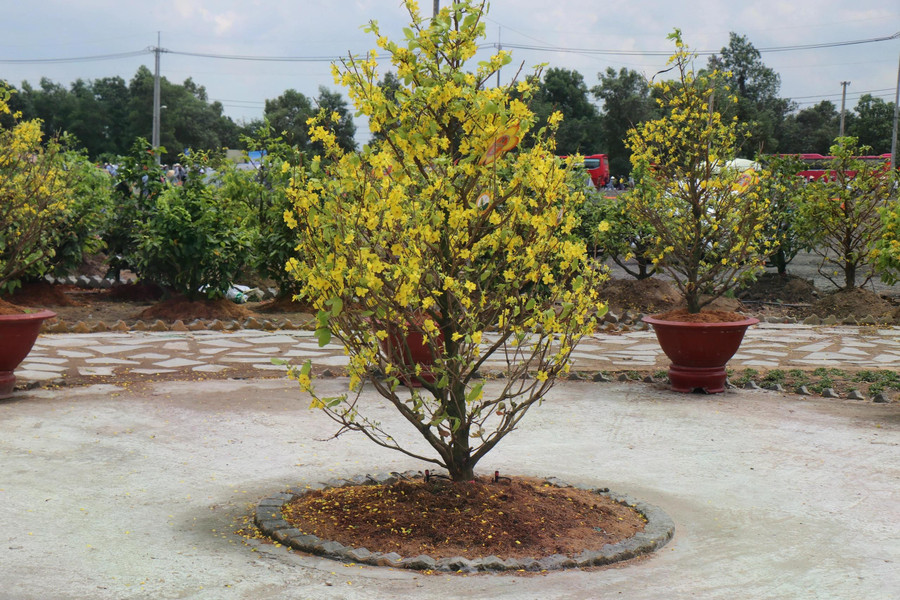 "Trong số 500 gốc mai được tuyển chọn để chuẩn bị cho đại lễ, tính đến nay đã có 350 cây nở hoa, nở từ dịp 30.4. Tỉ lệ cây ra hoa nghịch mùa như vậy là tốt", anh Đức chia sẻ.