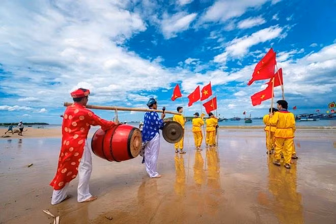 | Đoàn thuyền ra khơi trong lễ hội cầu ngư |