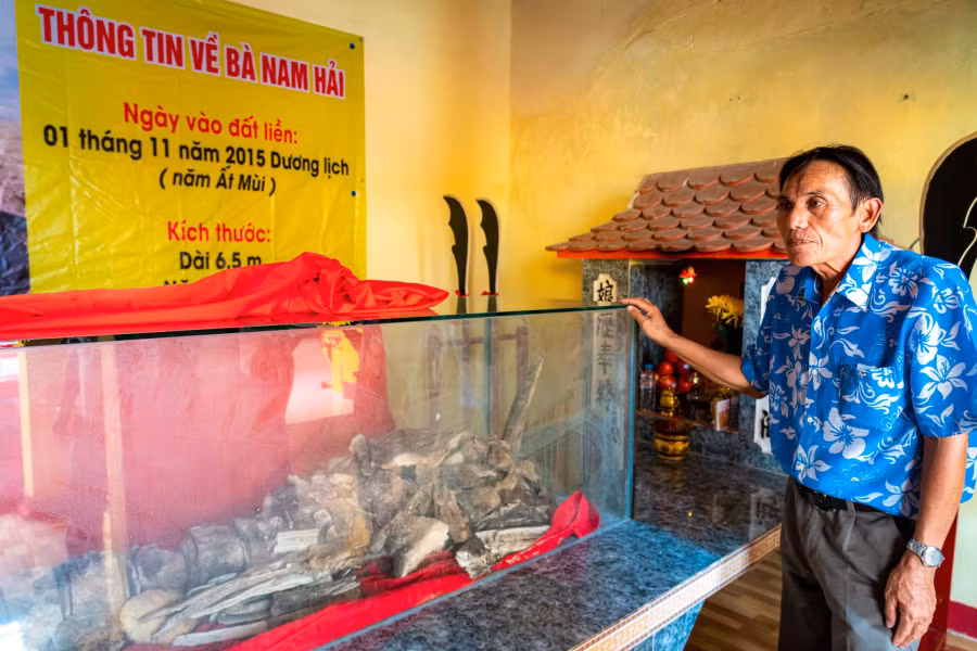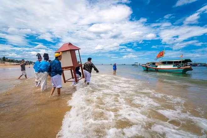 Cũng theo vị này, hàng năm cứ vào ngày Ông "lụy" (tức là ngày cá Voi chết), bà con ngư dân long trọng tổ chức lễ tế Ông Nam Hải – còn gọi là lễ hội Cầu Ngư với đầy đủ các nghi thức. Người dân miền biển tin rằng, tổ chức tế lễ chu đáo, nghi thức đầy đủ, thì ân đức của Ngài sẽ ban lại cho ngư dân được mùa tôm, cá, đời sống no đủ, sung túc.