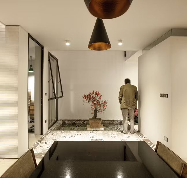 Các phòng chức năng, không gian trống, sân vườn, khoảng thông tầng…xen kẽ, tạo thành tổ hợp đặc, rỗng thú vị, đưa ánh sáng, gió trời đến mọi ngóc ngách trong nhà.