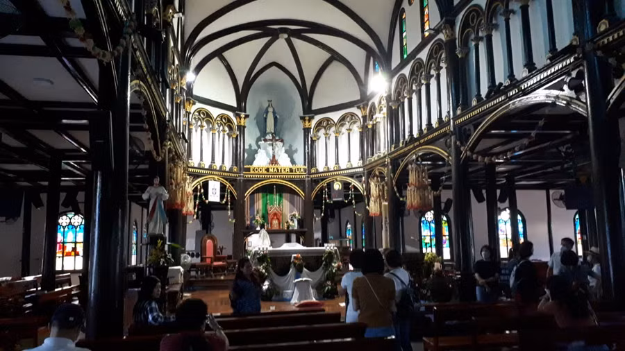 Các cột trụ nhà thờ làm bằng gỗ cà chít.