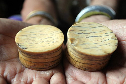 Cặp hoa tai bằng ngà voi. Ảnh: Trần Hóa.