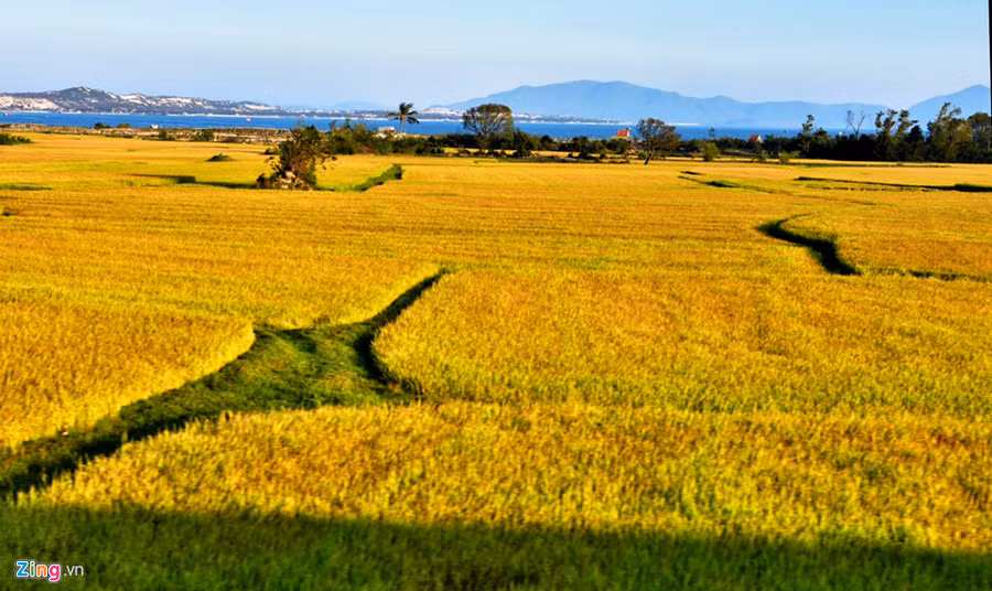 Tháng 4, dọc các tỉnh miền Nam Trung Bộ, lúa đã chín tạo nên những cánh đồng vàng rộm đẹp mắt.