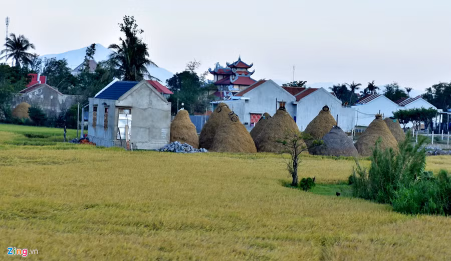 Những ụ rơm như chiếc nấm khổng lồ mọc lên từ ruộng đồng.