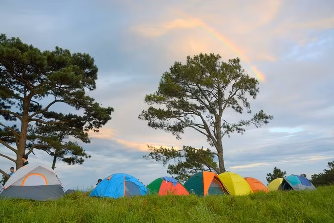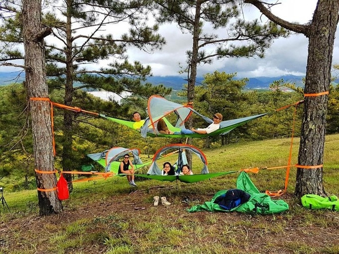 Bạn di chuyển từ trung tâm Đà Lạt đến Thung Lũng Vàng khoảng 14 km, sau đó chạy xe máy thẳng vào đồi hoặc có thể đi bộ thưởng ngoạn phong cảnh. Cắm trại, tiệc BBQ, đốt lửa trại giữa không gian hoang dã sẽ là những trải nghiệm đáng nhớ. Ngoài lều truyền thống, bạn có thể đặt lều trên cây.