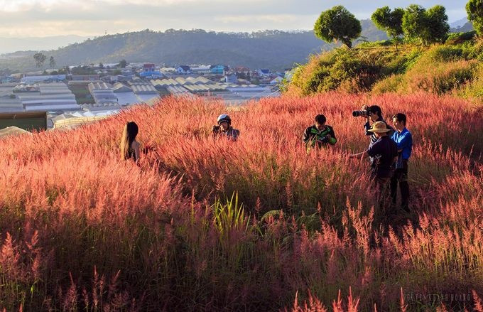 Cảnh đồi cỏ trùng điệp ở Tà Năng, vẻ lãng mạn ở đồi cỏ hồng Đà Lạt khiến nhiều du khách thích đến cắm trại, chụp ảnh dịp cuối tuần.