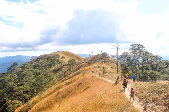 Tuyến đường tuần tra biên giới chạy dọc các đồi cỏ được ví như các "sống lưng khủng long" rất hùng vĩ. Bạn nhớ mang theo đồ ăn, nhiều nước uống khi đi trekking khám phá các đồi cỏ.
