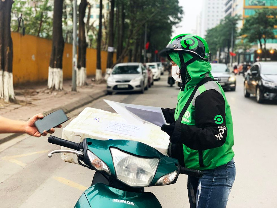 Chị Đỗ Thị Thuỷ (38 tuổi, quê ở huyện Hoài Đức, Hà Nội) chạy xe được gần 3 năm nay. Trước đây, chị vừa bán hàng, vừa chạy xe, nhưng từ khi dịch Covid-19 xuất hiện, chị chuyển hẳn sang làm nghề tài xế Gojek. “Thu nhập cũng giống làm thuê, nhưng chạy xe thoải mái, tiện thu xếp việc gia đình. Giỗ chạp về quê cũng được, mệt quá nghỉ cũng được, mưa rét đi muộn một tí cũng chẳng sao,” ” chị Thuỷ cho hay.