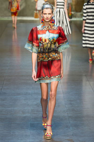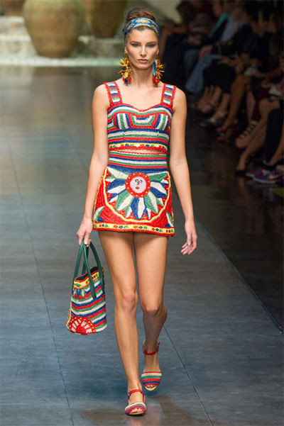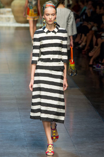 Vẫn là những mẫu váy xòe, váy midi (chiều dài qua bắp chân), dáng váy oversized... quen thuộc trên chất liệu vải lụa, ren... nhưng điểm đặc biệt của bộ sưu tập xuân - hè lần này chính là sự kết hợp hài hòa giữa màu sắc sặc sỡ và họa tiết hoa văn bí ẩn của người bộ lạc hay những đường kẻ bản to trẻ trung, năng động. Phụ kiện đi kèm cũng có màu sắc tươi sáng, "bắt mắt". Khăn quàng cổ được "biến" thành băng đô làm điệu cho tóc.