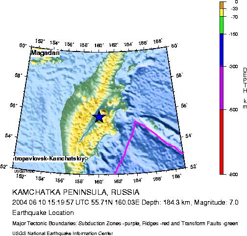 Cũng theo USGS, khu vực phía Nam bán đảo Kamchatka là một trong những vùng có hoạt động địa chất mạnh nhất trên thế giới do sự hình thành của Vòng cung Kuril - Kamchatka. Từ năm 1900 đến nay, tại đây đã xảy ra 7 trận động đất có cường độ từ 8,3 độ richter trở lên.