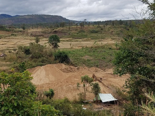 Chiều 26/12, PV có mặt tại địa điểm khai thác cát trái phép là khu vực suối địa giới hành chính giáp ranh xã giữa xã Lơ Phang và xã Đắk Yă, huyện Mang Yang, tỉnh Gia Lai.