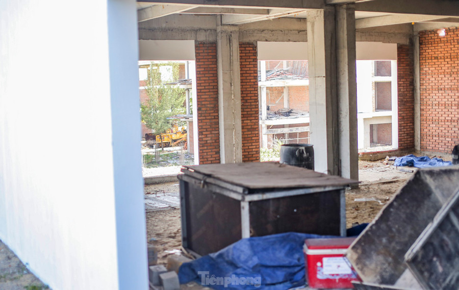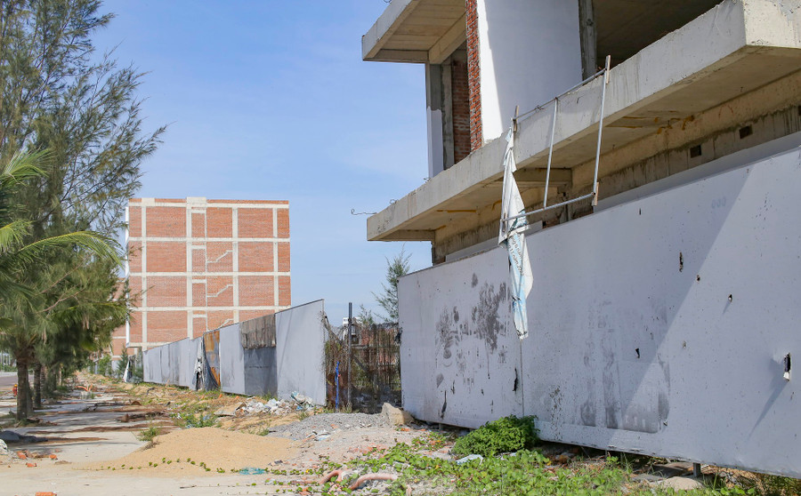 | Qua ghi nhận của PV, nhiều hạng mục thi công dang dở, có dấu hiệu xuống cấp. Trưởng Ban Quản lý KKT tỉnh Bình Định cũng cho hay, dự án đang bị khiếu nại, khiếu kiện rất nhiều. Ngành thuế cũng đang tiến hành phong tỏa tài khoản ngân hàng, cưỡng chế tiền thuế đất. Ảnh: Trương Định |