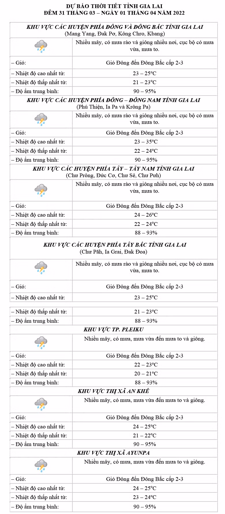 (GLO)- Theo Đài Khí tượng thủy văn tỉnh, trong 24 đến 48 giờ tới, Gia Lai chịu ảnh hưởng của rìa nam áp cao lạnh lục địa suy yếu nên khu vực tỉnh Gia Lai có mưa rào vài nơi.