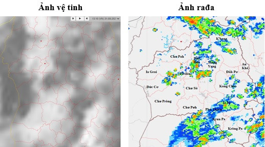 Qua theo dõi trên ảnh ra đa thời tiết Pleiku và ảnh mây vệ tinh cho thấy những vùng mây đối lưu tồn tại trên khu vực các huyện Kbang, Đak Đoa, Mang Yang, Kông Chro, Ia Pa, Krông Pa và TP. Pleiku. Hiện những vùng mây này có xu hướng phát triển và mở rộng thêm.