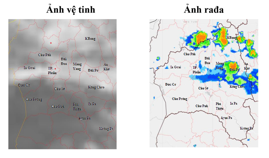 Cảnh báo: Trong những giờ tới, những vùng mây này sẽ gây mưa rào và giông cho khu vực nói trên, sau đó có khả năng lan sang các khu vực lân cận (huyện Đức Cơ, Ia Grai, Chư Păh, Đak Đoa, Mang Yang, thị xã An Khê và TP. Pleiku). Cần đề phòng xảy ra mưa lớn cục bộ, lốc, sét và gió giật mạnh.