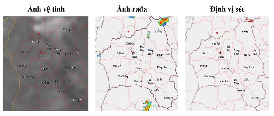 Qua theo dõi trên ảnh ra đa thời tiết Pleiku, ảnh mây vệ tinh và định vị sét cho thấy những vùng mây đối lưu tồn tại trên khu vực huyện Kbang. Hiện tại những vùng mây này có xu hướng phát triển và mở rộng thêm.