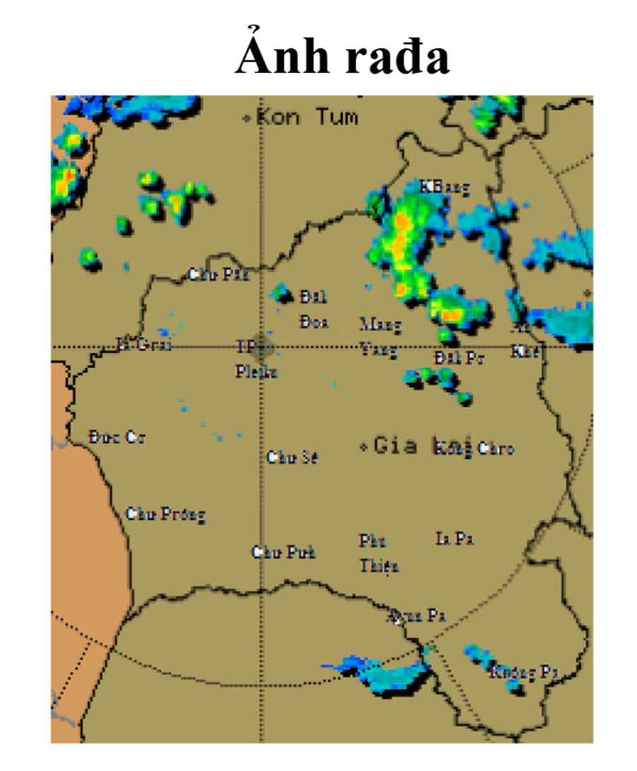 Qua theo dõi trên ảnh ra đa thời tiết Pleiku cho thấy những vùng mây đối lưu tồn tại trên khu vực huyện Mang Yang, Kbang, Đak Pơ và thị xã An Khê. Hiện tại những vùng mây này tiếp tục phát triển và mở rộng thêm.