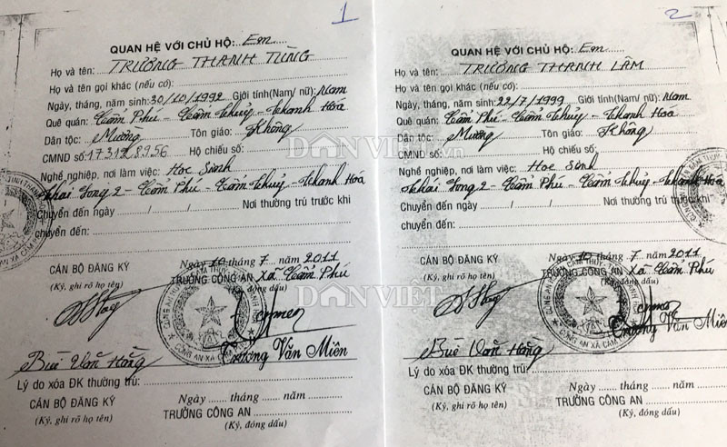 Cụ thể, hai người con trai của ông Thức gồm Trương Thanh Tùng (SN 1992), Trương Thanh Lâm (SN 1999) được ghép vào hộ khẩu nhà bà Trương Thị Hằng, ngày vào sổ 10/7/2011.