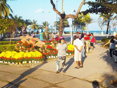 Trên các tuyến phố lớn ở Nha Trang như: Trần Phú, Lê Thánh Tôn, Đinh Tiên Hoàng… trở nên xinh đẹp, hấp dẫn hơn nhờ các điểm bày bán hoa Tết. Khi đêm về, phố phường Nha Trang trở nên lung linh nhờ hàng nghìn bóng đèn nháy, đèn trang trí. Nhiều du khách quốc tế như Nga, Úc, Hàn Quốc... đến Nha Trang dịp này tỏ ra rất thích thú tản bộ, tìm hiểu Tết cổ truyền của người Việt.