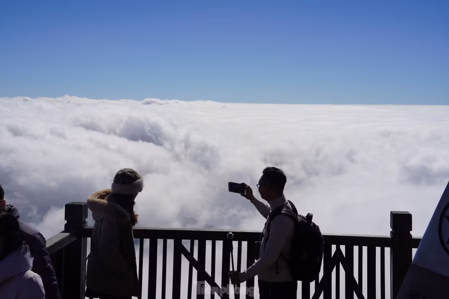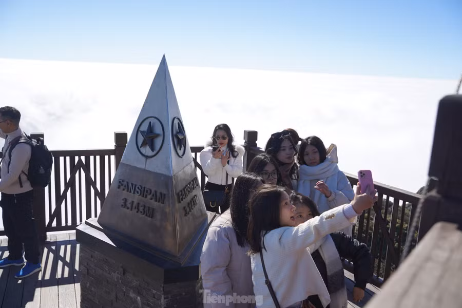 Những ngày đầu năm mới, đỉnh Fansipan thu hút đông đảo du khách Việt Nam và quốc tế đến tham quan, khám phá. Trời xanh trong, mây trắng bồng bềnh hòa cùng vẻ đẹp hùng vĩ của thiên nhiên khiến mọi người không khỏi trầm trồ.