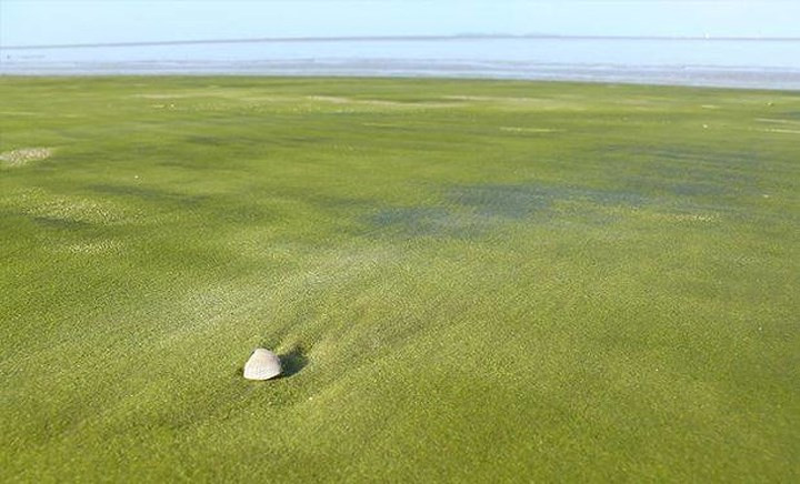 Bãi biển này ở Kourou, Guiana thuộc Pháp không phải là bãi biển điển hình với cát vàng hay trắng. Không rõ điều gì làm cho cát xanh trên bờ biển tuyệt đẹp này.