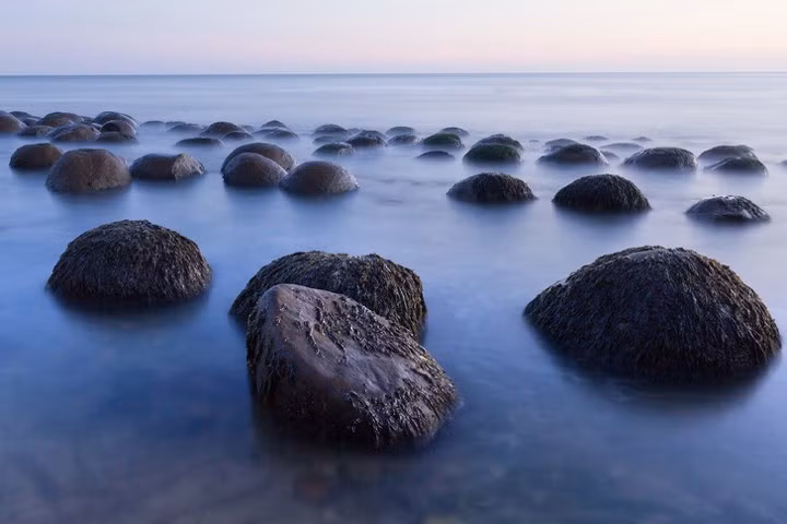 Bãi biển Bowling. Những quả cầu bằng đá nằm rải rác trên bãi biển Mendocino ở California, Mỹ. Thời gian tốt nhất để ghé thăm bãi biển này là khi thủy triều rút.