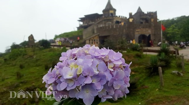 | Du khách thích thú check in cùng hoa cẩm tú cầu trên đỉnh Mẫu Sơn. |