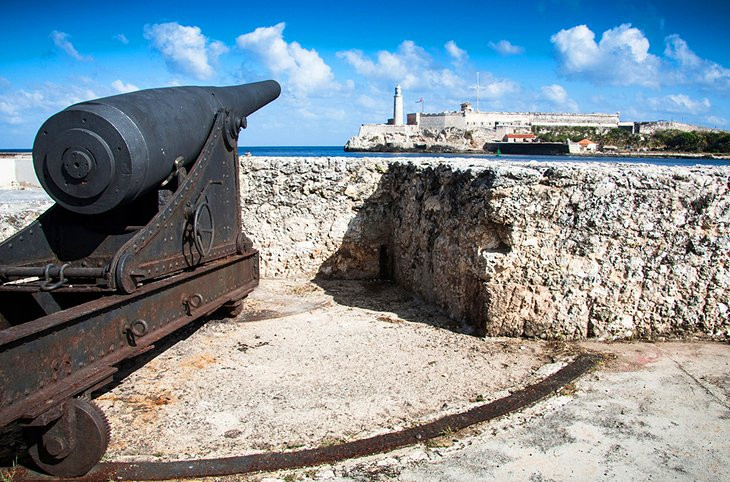 Công viên di tích lịch sử bao gồm hai pháo đài nổi tiếng của Havana: Castillo de los Tres Reyes del Morro, còn được gọi là El Morro và Fortaleza de San Carlos de la Cabana. Nằm ngay tại lối vào Vịnh Havana, El Morro được xây dựng vào cuối thế kỷ 16 và đầu thế kỷ 17 để chống lại cướp biển. Ngọn hải đăng đã được thay thế bằng một hòn đá vào giữa thế kỷ 19, nhưng chiếc đèn ban đầu của nó vẫn tỏa sáng ra biển. Bạn có thể lên đỉnh pháo đài để chiêm ngưỡng khung cảnh ấn tượng của đại dương và thành phố.