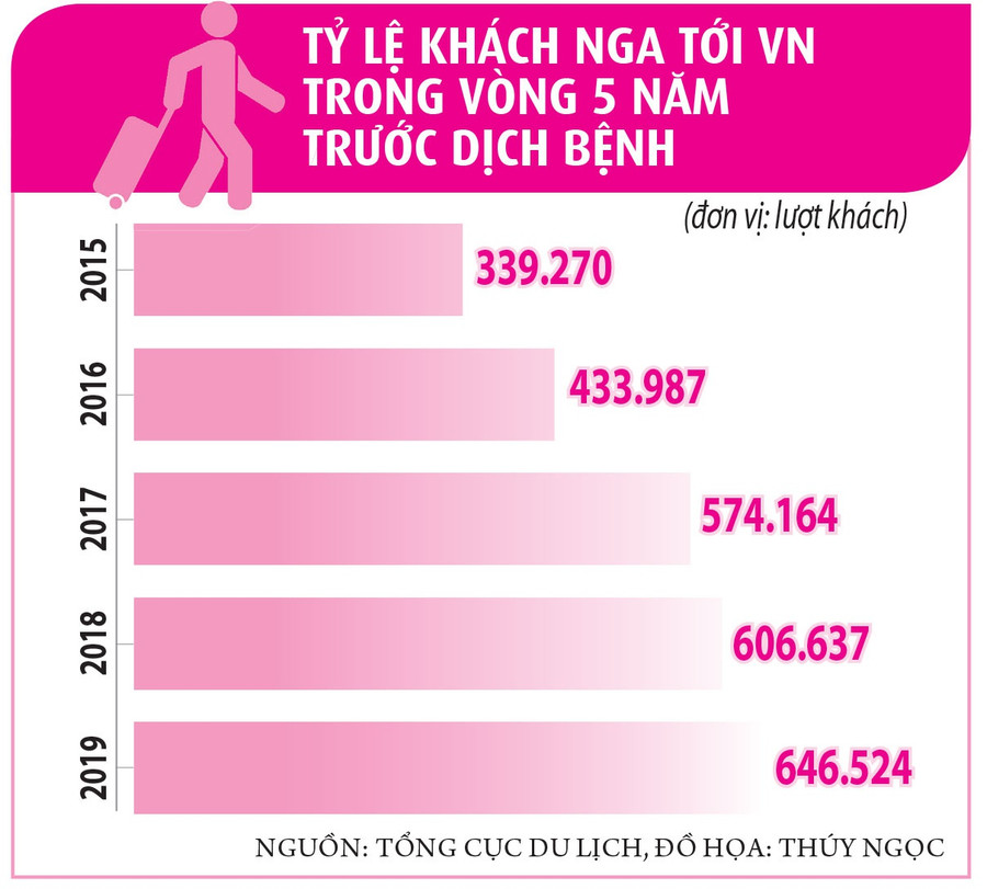 “Tuy nhiên, có thể khẳng định rằng nếu VN có thể mở cửa du lịch hoàn toàn từ ngày 15.3 theo đúng dự kiến, chúng ta sẽ gần như mất thị trường Nga. Trong điều kiện bình thường, mùa hè tầm tháng 6, tháng 7 hằng năm, khách Việt đi Nga rất nhiều để coi đêm trắng. Tour tuyến outbound sang Nga dự kiến lên trở lại từ tháng 3 giờ coi như ngưng. Ngược lại, số lượng khách Nga vào Nha Trang, Phú Quốc bình thường rất lớn, giờ cũng chưa đoán định được. Nhìn chung, tình hình khá khó khăn cho du lịch Việt”, ông Yên nhận định.